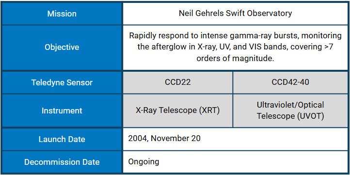NASA. (n.d.). Swift Factsheet. https://swift.gsfc.nasa.gov/about_swift/Sci_Fact_Sheet.pdf